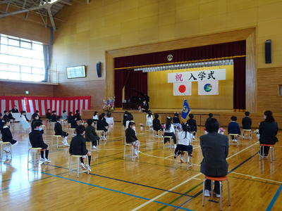 今年の入学式では例年と違い、新入生と保護者のみが出席する形となりました。2~6年生はリモートで参加しました。
