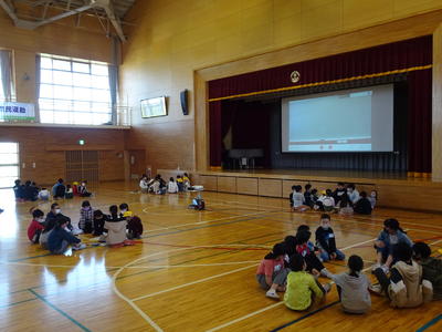 各班集まり、リモートで一迎会の進行をしました。2年生から6年生が1年をあたたかく迎え入れてくれました。