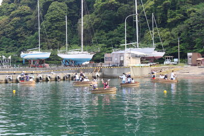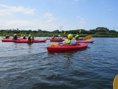 1日目は、カヌー体験を行いました。「落ちたらどうしよう」と最初は不安がる子どももいましたが、漕いでみると「楽しい!」「競争だ~!」と一生懸命漕いでいました。