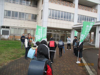 毎回担当学年を決めて工夫してあいさつしている子どもたちですが、今回は登校した子どもたちからあいさつ運動に加わってくれました。さわやかなあいさつが、気持ちよく金曜日をスタートさせてくれました。