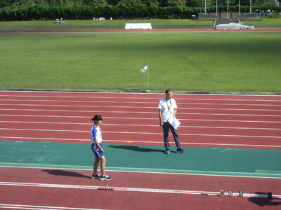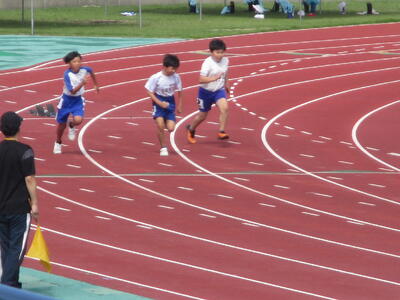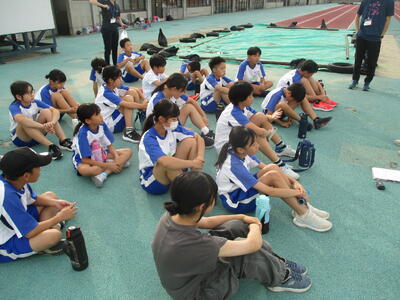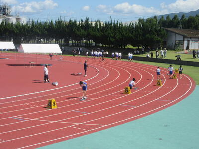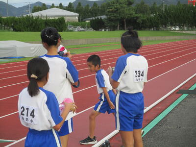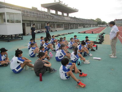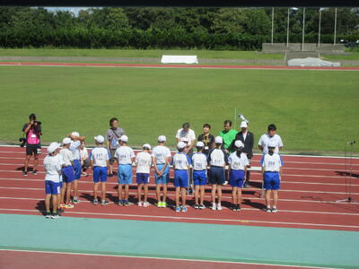 9/25の胎内市親善陸上競技会に向けて、本番の会場となる胎内市陸上競技場でリレーメンバーの練習を行ってきました。短時間でしたが、みんな集中して練習していました。