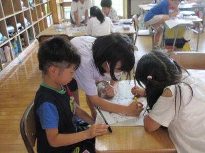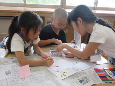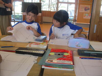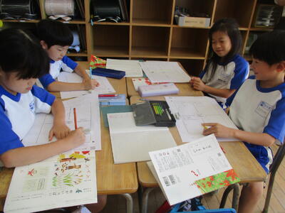 給食センターの栄養教諭の先生をお招きして食育の授業を行いました。また、先日植えたダイコン畑にに立てる看板を作りました。集中して、熱中して学んでいる、いつも元気いっぱいの2年生です。