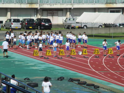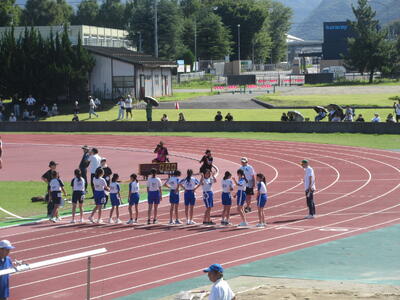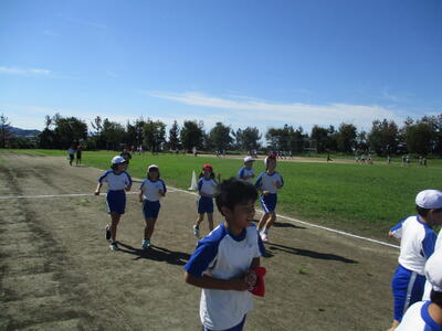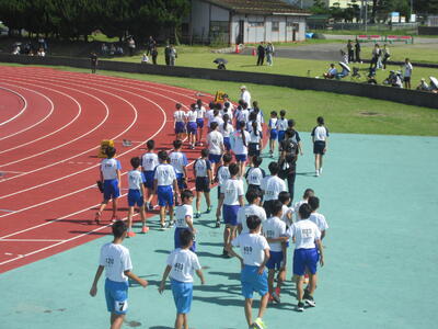 晴天のもと、一人一人が練習の成果を発揮しがんばってきました。「親善」の名称通り、市内各校の6年生とも交流することができました。競技では、リレーを含む10種目中4つで優勝することができました。6年生、練習から本当によくがんばりました。応援に来てくださった保護者の皆様、ご家族の皆様、ありがとうございました。