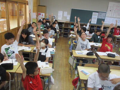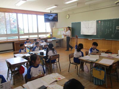これまで授業を行う実習を行ってきましたが、今日は普段通ってらっしゃる学校の先生も参観に来てくださいました。また、胎内小学校の職員も応援の意味を込めて多数参観させてもらいました。