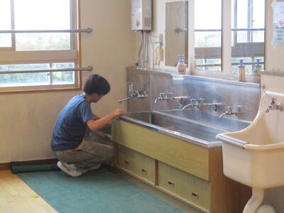 清掃時間に、若手職員が率先して水場を丁寧に清掃していました。すてきな姿でした。