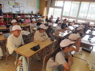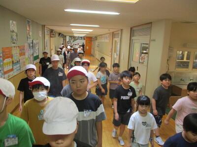 今年度3回目の避難訓練を実施しました。今回は、大雨による河川氾濫、洪水の恐れという想定で行いました。休み時間に実施し、まずは自教室への避難、その後、校舎3階への避難という2段階の避難を行いました。子どもたちは真剣に取り組んでいました。防災について、ご家庭でも話題にしていただけたら幸いです。