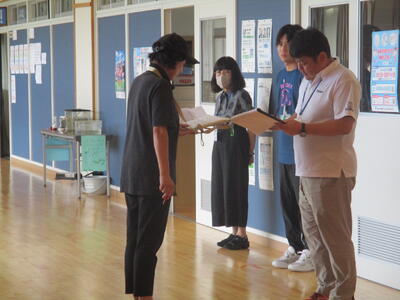 昨日ですが、9月の胎内市あいさつの日でした。今回は、PTA地域・育成委員の方からも参加いただきました。ありがとうございました。今回は、4年生が企画してくれた「自分から進んであいさつしよう」という取組でした。4年生の素晴らしいあいさつで、全校のあいさつもよかったです。