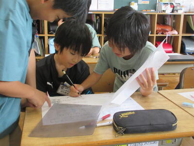 国語で「話すこと・聞くこと」の学習をしたり、スタディタイムで算数の発展問題に取り組んだりしていました。