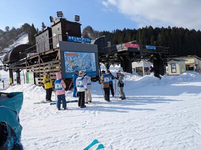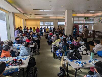 午後の部が終わります。午後は少々雨が降りましたが、問題のないコンディションでした。良いコンディションの下、楽しく充実したスキー教室となりました。14名のボランティアの皆さんと7名のインストラクターさんのおかげです。心より感謝申し上げます。そして、準備等ご協力いただきましたご家族の皆様にも感謝申し上げます。6年生の皆さん、また、胎内スキー場を利用してくださいね。