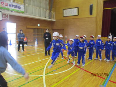 これまで体力もりもりタイムで取り組んできた練習の成果を発揮し、各学級ごとにがんばりました。2分間の8の字跳びです。どの学級も全力で取り組みました。また、応援する姿もすてきでした。校長先生からも、みんなをほめていただきました。校長先生の言葉の通り、「心の成長」が大いに感じられる長なわ大会になりました。