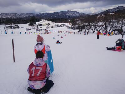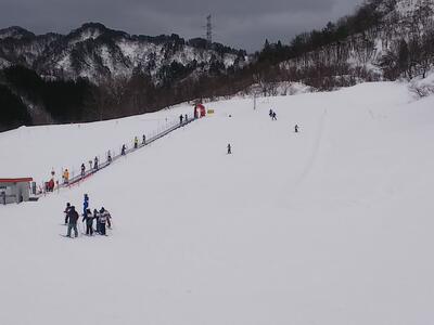 胎内スキー場はくもり。風は強くありません。開始直後から「楽しい~。」の声が聞こえます。