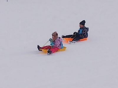 今日はちびっこゲレンデ絶好調です。よくそりがすべります。
