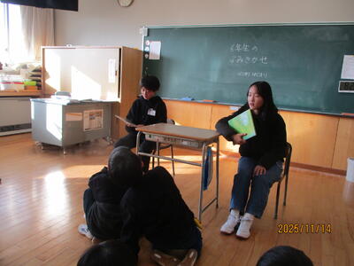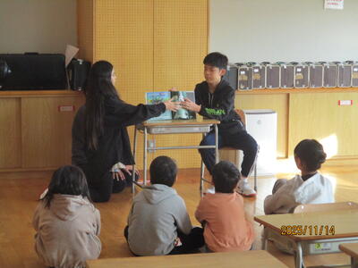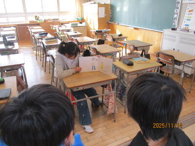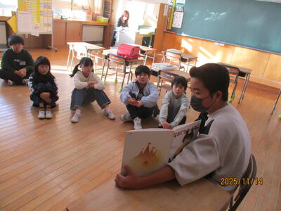 6年生の読み聞かせ 投稿: 管理者 (11/14) 校内読書旬間の取組の一つとして、6年生がにこにこ班(縦割り班)の1~5年生に読み聞かせをしてくれました。 先日読み聞かせをしていただいた地域の方からのアドバイスで「最低6回は読んで備える(黙読3回、音読3回」を実践した6年生、一人一人がすてきな姿でした。聞いている1~5年生もすてきな姿でした。 Tweet -