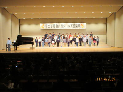胎内市ジュニア音楽祭(4年生) 投稿: 管理者 (11/14) 第21回胎内市ジュニア音楽祭に、4年生が参加してきました。 これまでの練習の成果を発揮し、今までで一番の合唱曲「にじ」を歌いました。 また他校の合唱を静かに聞いたり、拍手を送ったりするなど、マナーも素晴らしかったです。 Tweet -
