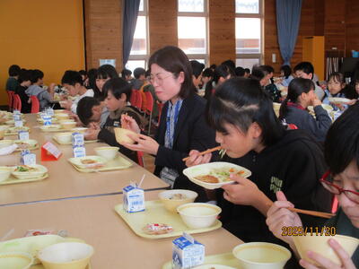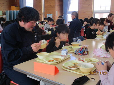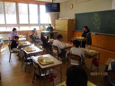 ふれあい給食(全校) 投稿: 管理者 (16:50) 給食センターの調理員さん、地域の食材生産者さん、栄養教諭の先生、胎内市教育委員会の給食担当の方をお招きし、ふれあい給食をしました。皆さんには各学年に入って一緒に給食を食べていただいたり、子どもたちからの質問に答えていただいたりしました。 いつもおいしい給食をありがとうございます。今後ともよろしくお願いいたします。 Tweet -