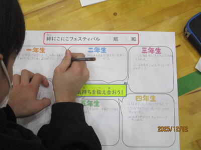 絆にこにこフェスティバル 投稿: 管理者 (12/02) 児童会行事「絆にこにこフェスティバル」でした。 にこにこ班で計画した出店を、みんなで協力して準備し、運営しました。 お客さんとして楽しむ時間は、思いきり楽しんでいました。 みんなですてきな児童会行事にすることができました。 振り返りもしっかり行いました。 Tweet -