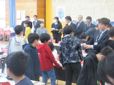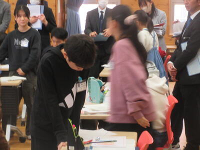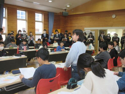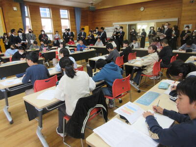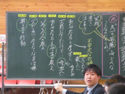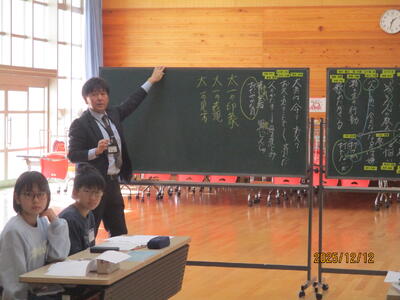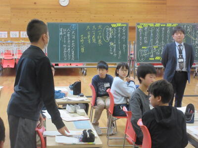 校内研修③「6年「海の命」単元」 投稿: 管理者 (11:26) 先週のことになりますが(12/12)、校内研修の大研修③として、6年国語科の授業公開を行いました。物語文「海の命」を学習材に、6年2組の子どもたちが精一杯言葉と言葉、言葉と事象をつないで読み深めました。胎内市内外からたくさんの先生方、教育関係者の方から参観いただきました。ありがとうございました。 今後も校内研修の推進に努めてまいります。 Tweet -