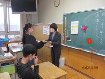 2学期最後の学級活動 投稿: 管理者 (12/24) 担任の先生から、通知表を受け取りました。 また、学級や学年で集会を開き、がんばった自分たちをほめ合う会、冬休みの見通しなどに関する指導がありました。 Tweet -
