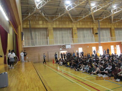 WT-1グランプリ 1日目 投稿: 管理者 (02/10) 児童会の情報委員会の企画、WT-1グランプリ1日目でした。参加申込をしてくれた子どもたちが、特技等を披露しました。音楽に合わせた縄跳び、フラフープ、ダンス、漫才。発表してくれたどの子も輝いていました。また、応援に来てくれた大勢の子どもたちの拍手や手拍子もすてきでした。明後日には、2日目を予定しています。 Tweet -