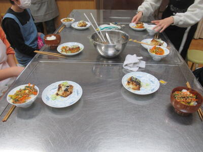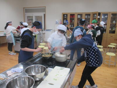 3年生のみそと5年生のコメを使って6年生が調理実習 投稿: 管理者 (11:46) 6の2家庭科「こんだてを工夫して」調理実習です。3年生(現4年生)が作ったみそと5年生が作った米を使い、1食分の献立を考え、主菜と副菜の調理を行いました。自分たちがやってきた学習と、下級生がやっている学習をあわせて、おいしい思い出ができました。 Tweet -