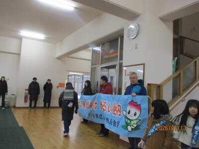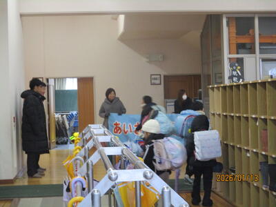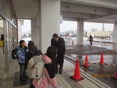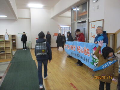 1月のあいさつの日、取組は1年生が行いました。ハイタッチ等をして、コミュニケーションとしてのあいさつをがんばりました。また、中澤教育長様はじめ、胎内市あいさつキャラバン隊の皆様も来校くださり、一緒にあいさつ運動をしてくださいました。ありがとうございました。