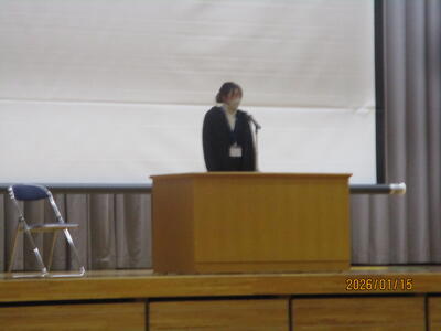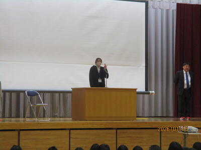 次に、校長先生からのお話しでした。干支にまつわる話、そして、雪道の安全な登下校についての話でした。