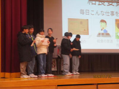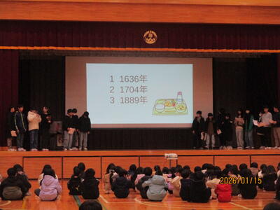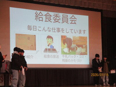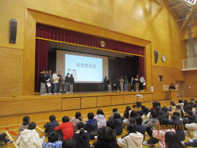 給食委員会の発表は、再来週から始まる給食週間に関する内容でした。クイズ形式で分かりやすく発表してくれました。練習の成果が発揮された、見事な表現でした。