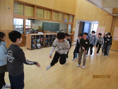 1/28に予定している全校長なわ大会に向けて、今日から体力もりもりタイムが始まりました。15分休みに数回、学級ごとに練習を行います。めあてを設定したり、励まし合ったりしながら、心身の向上を目指していきます。